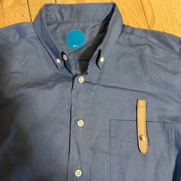 Elevate your wardrobe with this stylish blue button-down shirt. Perfect for any occasion, it offers both comfort and elegance. A standout piece from Japanese label Browze Inc., this yellow oxford shirt is made in Japan from durable 100% cotton and features a button-down collar and an unusual leather loop tab on the chest pocket — a subtle design flourish rarely seen in Western shirting.The clean silhouette, tonal stitching, and thick oxford cloth construction align it with brands like Beams+, Engineered Garments, or Visvim, while the limited “00-3” labeling suggests it’s from a special in-house capsule or domestic-only run.Details: