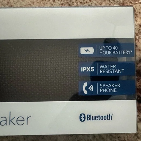 Wirelessly streams from BLUETOOTH device up to 33ft away!Water resistant design protects your speaker!Rechargeable battery lasts up to 40 hours!Speakerphone for hands-free calling!Stereo speaker and passive radiator help deliver full sound!Pair wirelessly with another Sonic Speaker for stereo sound!Included:USB charging cableQuick setup guideNew In Box!