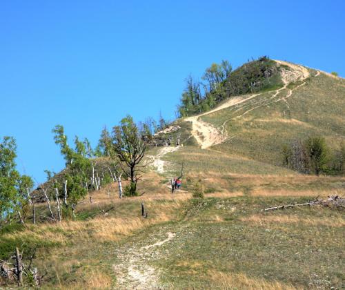 Узкая обрывистая тропа, идущая в нескольких десятках метров над Волгой