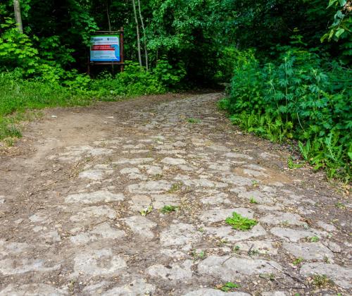 Мощёная крупным булыжником дорога в лесу за Гавриловой Поляной и по территории посёлка