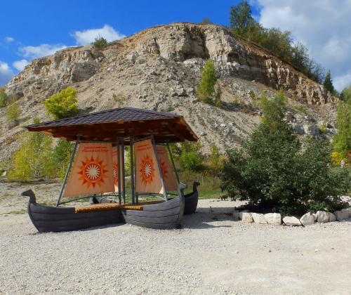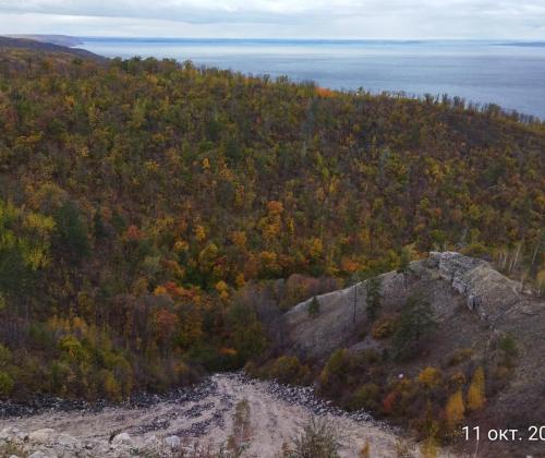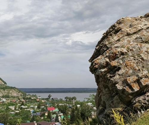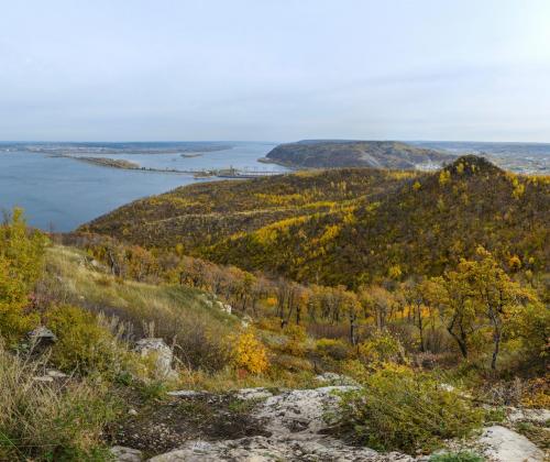Лишённый растительности скальный шихан на склоне горы Отважной с которого как на ладони предстаёт большая часть Жигулёвска, и комплекс сооружений Жигулёвского гидроузла