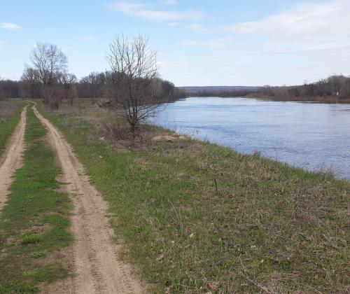 После пляжа дорога плавно поворачивает на запад, огибая озеро Лебяжье (кстати, отмеченное ещё на карте Самарского уезда 1808 года), после чего раздваивается: прямой путь приведёт вас к селу Выползово, направо же в северо-восточном направлении отходит дорога к пристани «Пляж Поляны им. Фрунзе». До пристани дорога идёт преимущественно по открытой местности, но сильно петляет, поэтому стоит внимательно следить за указателями на пути и маршрутом в навигаторе. Дойдя до базы отдыха «Тихий плёс», дорога поворачивает на восток, пересекает по мосту озеро под названием Замурские Ключи (бывшая волжская протока) и выходит к пристани у базы отдыха «Малыш».