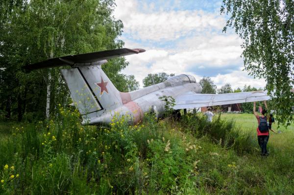 Маршрут начинается от пристани в Рождествено и идёт по центральной улице села, названной в честь космонавта Виктора Пацаева. По дороге можно увидеть дом, где жили его родители и бывал сам космонавт. Улица Пацаева выводит из Рождествено к настоящему перекрёстку семи дорог, из которых пять – асфальтовые. Здесь важно не запутаться и выбрать нужную: она идёт прямо и чуть направо. Через 750 метров вправо от асфальтовой дороги отходит грунтовка, ведущая через сосновый лес мимо остатков военной части и построек заброшенного аэродрома. Здесь же можно увидеть установленный на небольшом возвышении учебный самолёт Aero L-29 Delfin – территория возле него пока ещё используется людьми.