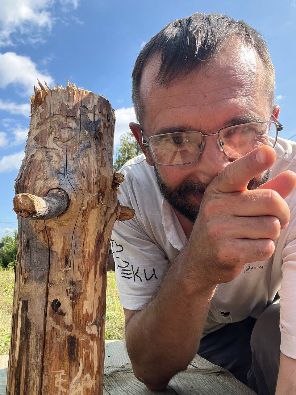 Мы ставим метки на деревьях и столбах, обозначая путь. Там, где нет деревьев, устанавливаем столбики-указатели, которые делаем сами из валежника. Также из валежника мы делаем и лавочки, чтобы туристы могли отдохнуть на пути.