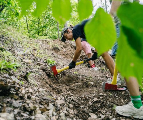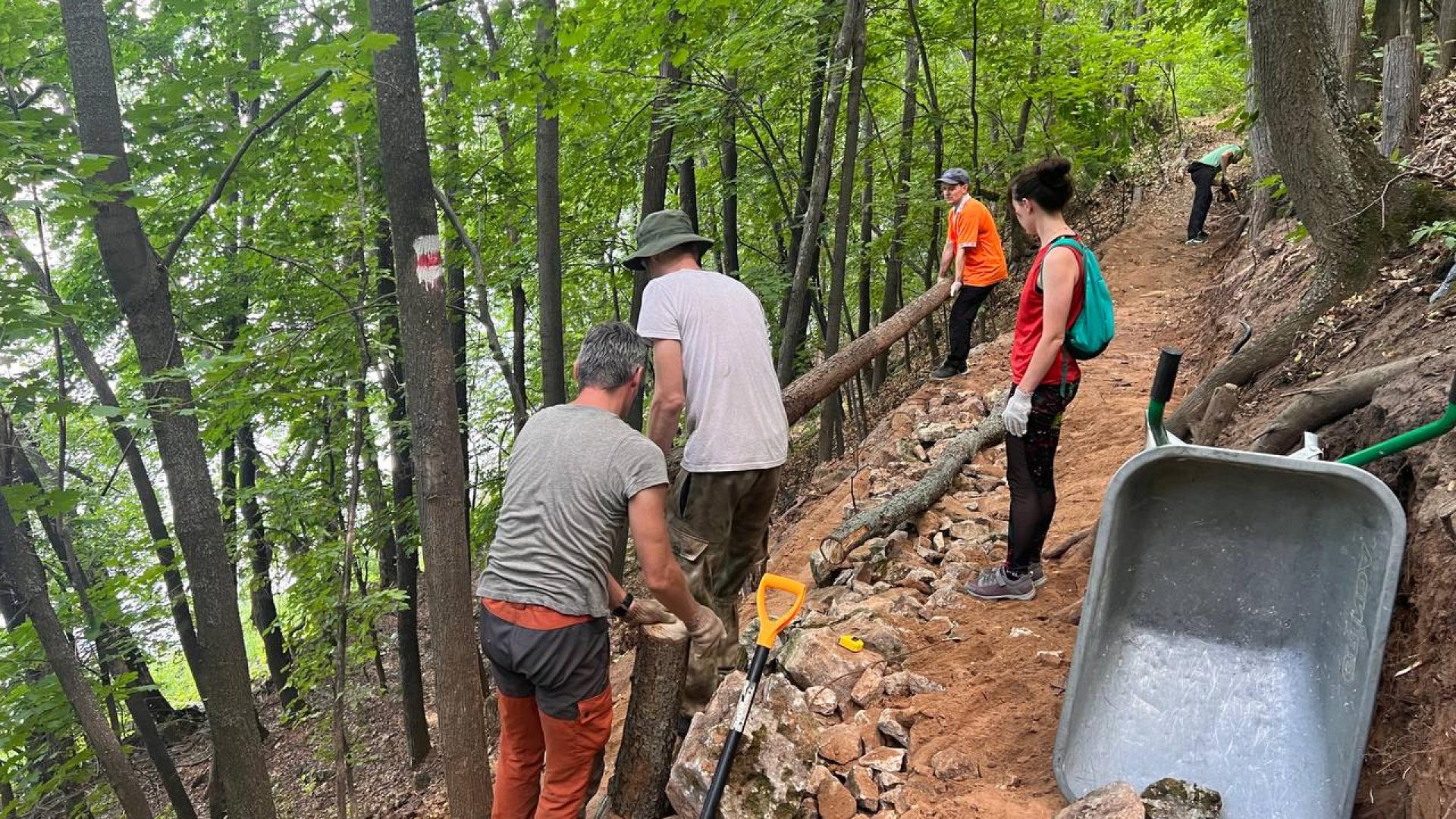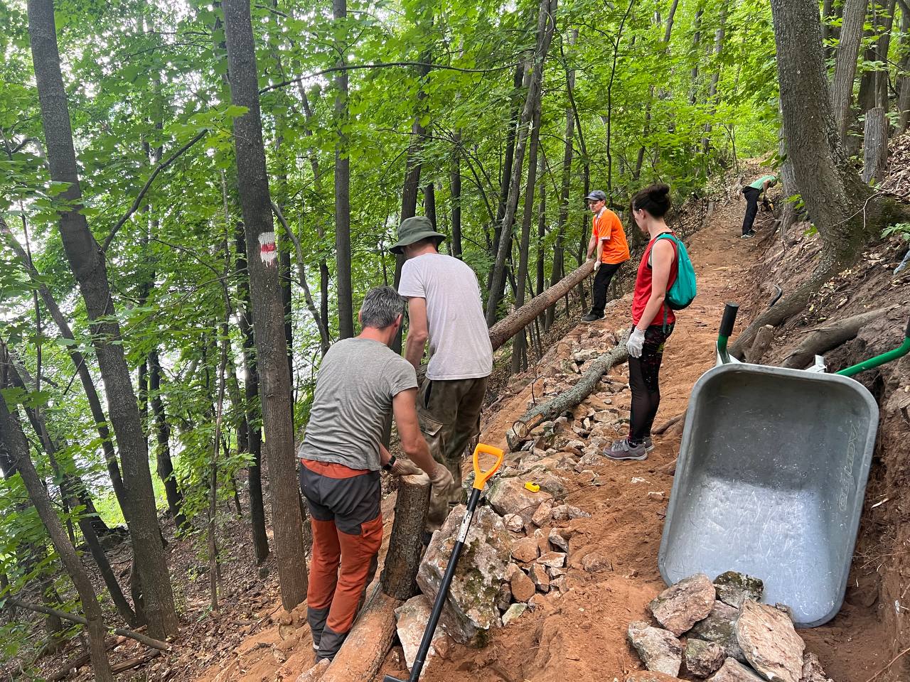 С 2024 года мы начали работать с полотном тропы. Расширили и укрепили популярную Козью тропу - извилистый участок длиной 1 км на обрывистом склоне. Сделали удобную лестницу на крутом подъеме к горе Отважная близ Жигулевска.