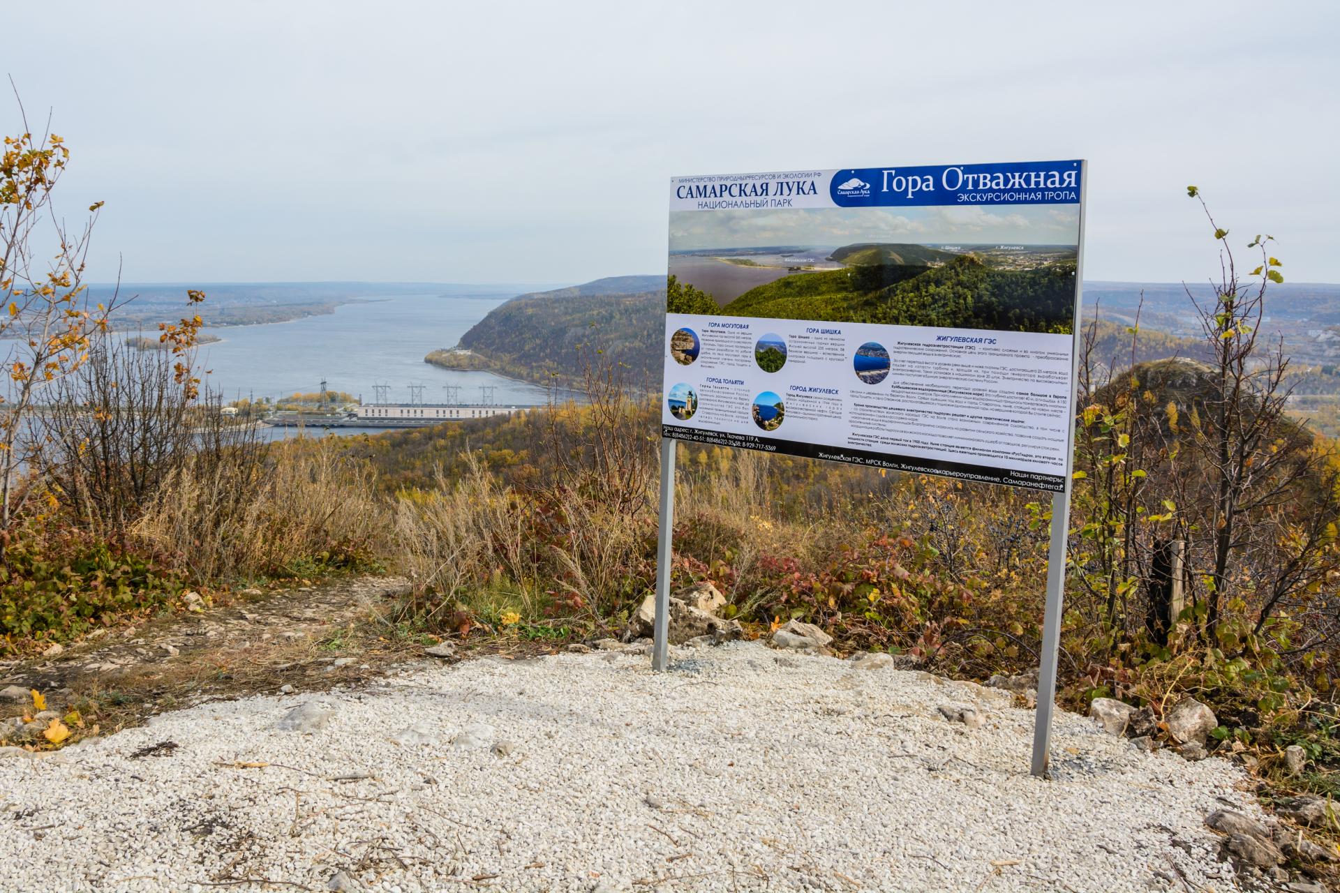 Гора Отважная (в народе её ещё называют Телевышкой, потому что на её вершине установлен телевизионная мачта-радиоретранслятор) имеет высоту 303 метра, и с её смотровых площадок в любую сторону открываются потрясающие виды. С восточной смотровой, несколько лет назад оборудованной информационными аншлагами и местами для отдыха, можно полюбоваться Волгой, плотиной Жигулёвской ГЭС, разделяющей реку на Куйбышевское и Саратовское водохранилища, Комсомольским районом города Тольятти на противоположном берегу. Отсюда же хорошо видна соседняя вершина гора Могутовая, а также так называемая Шишка – скальный выступ на склоне Отважной, к которому ведёт хорошо протоптанная тропа.