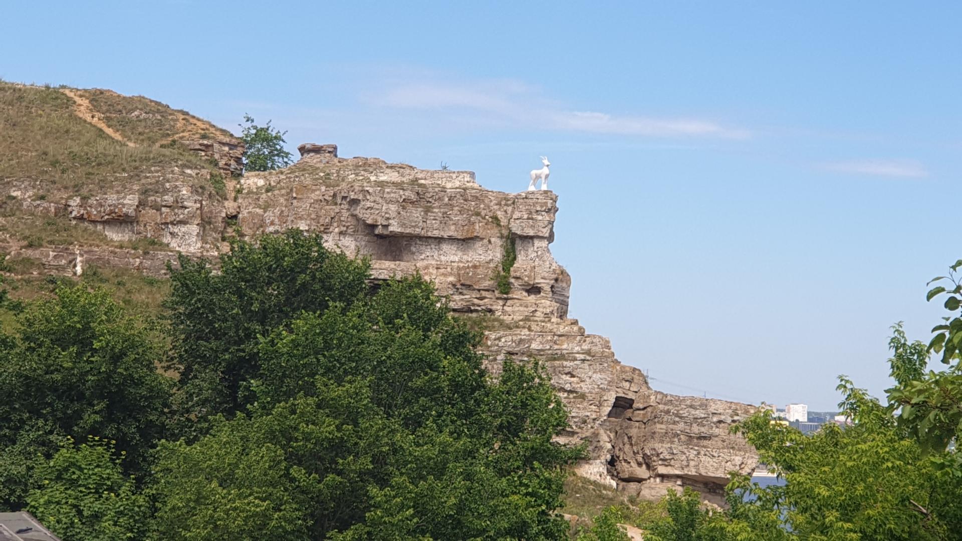 Скульптура горной козы (или оленя – рога на изваянии иногда меняются) на утёсе Могутовой горы над посёлком Моркваши (Жигулёвск). Установил эту скульптуру, как говорится в большинстве источников, один из местных жителей в 1990-е годы, но ни точной даты, ни имени автора выяснить пока не удалось. Известно только, что сначала скульптура имела ветвистые рога, т.е. по изначальной задумке это был всё-таки олень, а не коза. Однако уже в 2000-е годы неизвестные вандалы отломали рога, и более 10 лет из головы фигуры торчали концы арматуры. Весной 2020 года активисты из Жигулёвска приделали статуе новые рога – причём не гипсовые, а самые настоящие, но почему-то козьи. Но, увы, продержались они недолго, к началу 2022 года скульптура опять лишилась своего украшения.