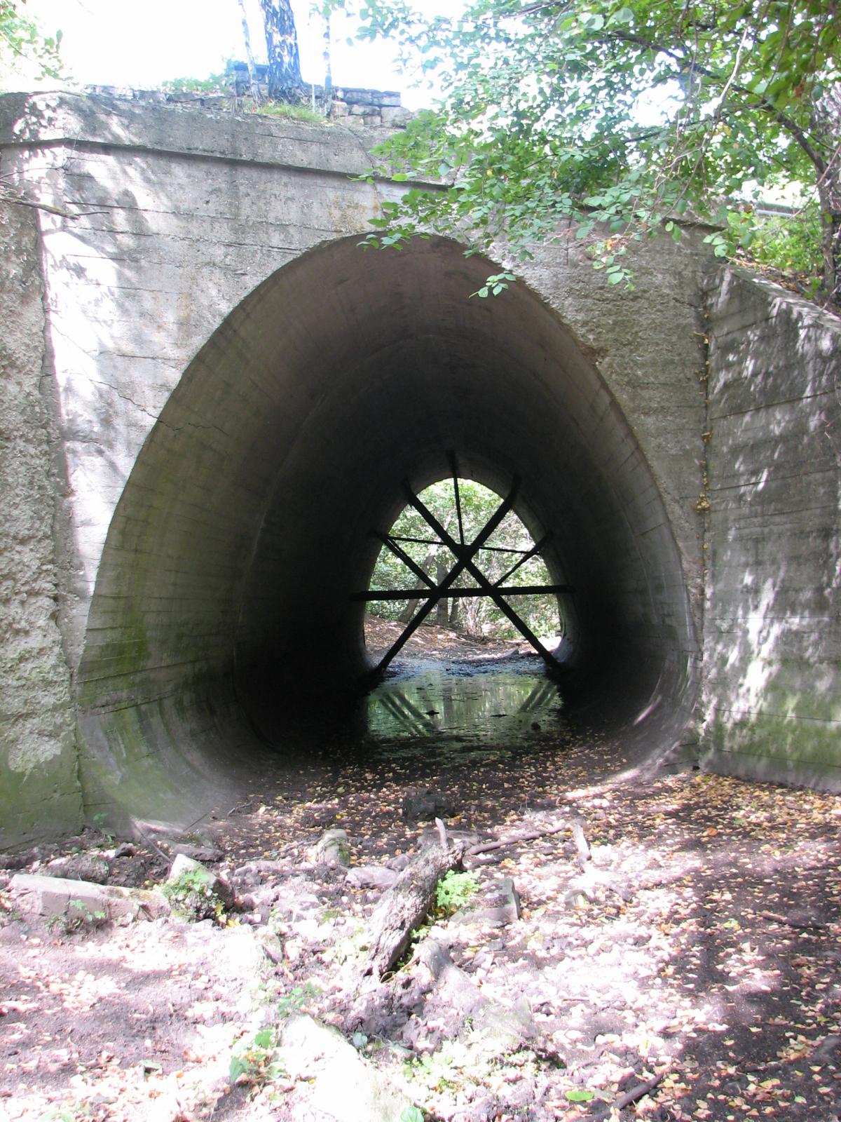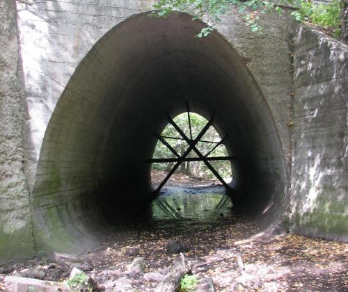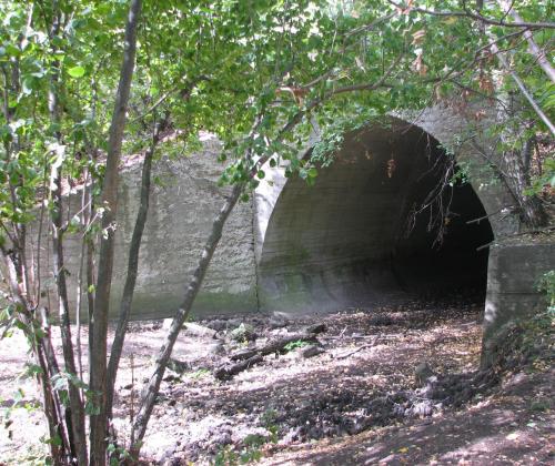 Под автомобильной дорогой возле села Бахилова Поляна сделан большой тоннель для сточных вод необычной арочной формы. Своды тоннеля выполнены из бетона и дополнительно укреплены стальными балками.