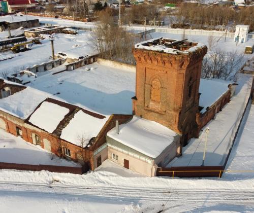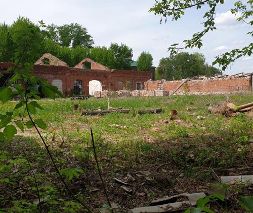 Полуразрушенные постройки между водонапорной башней и бывшим общежитием для рабочих (сегодня – техникум) в селе Рождествено. Кроме местверских рядом с башней находилось машинное отделение для двигатея и водяного насоса. Являются частью усадебного комплекса Екатерины Новосильцевой / купцов Ушковых в селе Рождествено