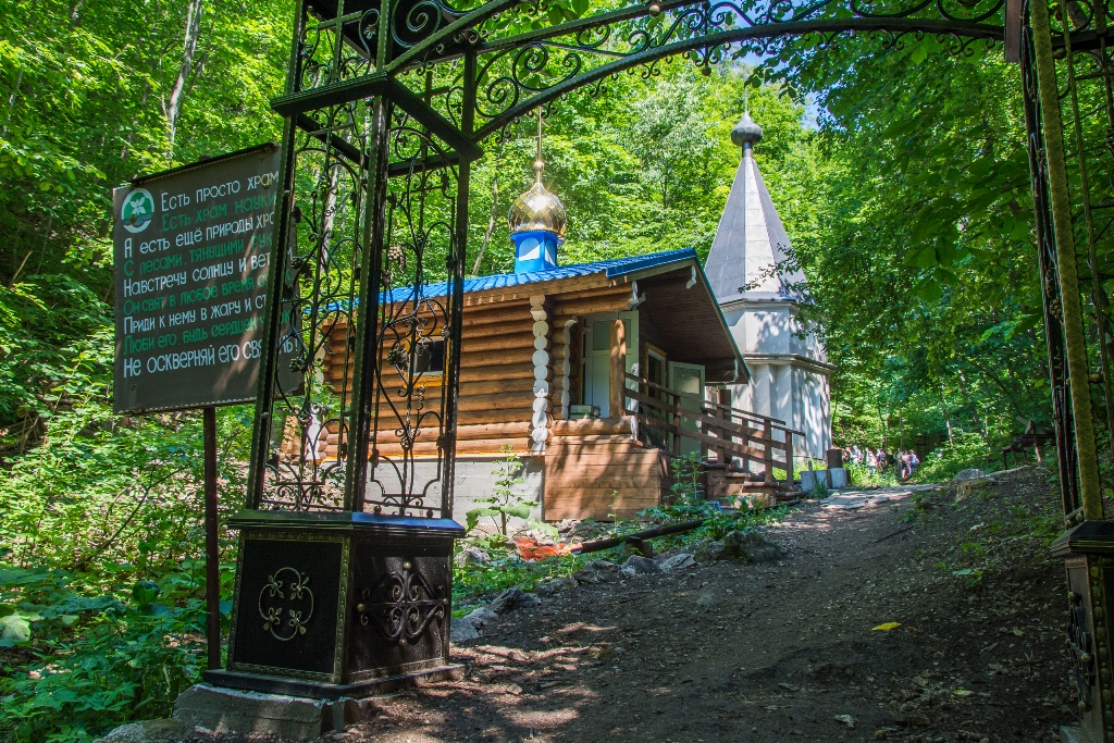 Экотропа заповедника идёт через Никольский родник (около 500 метров от начала экотропы), переваливает через горный хребет и спускается в посёлок Солнечная поляна. В описании здесь она проходится в обратном направлении. Официаольный сценарий прохожждения экотропы «Храм Природы» предполагаеся заповедником от посёлка Солнечная Поляна в сторону Ширяевского оврага.