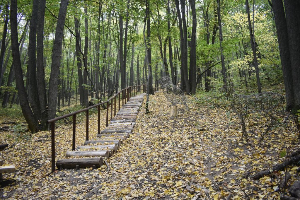 Далее тропа «Путь Реки», миновав экотропу заповедника, по улице Нефтяников выходит к берегу Волги, где, проходя через реликтовый пойменный лес величественных осокорей, приводит к пристани «Солнечная поляна».