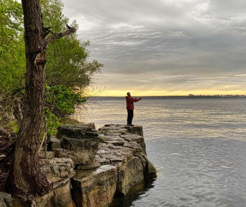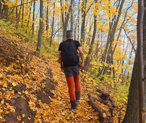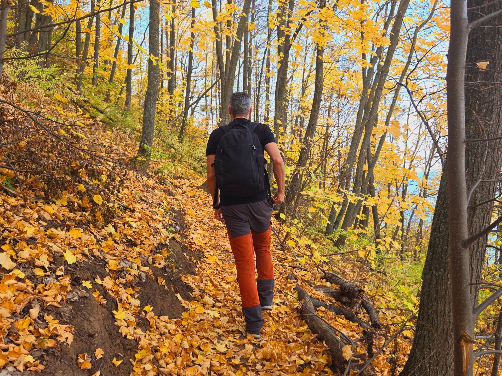Со смотровой площадки на горе Отважной путь продолжается по тенистой лесной дороге, выходя на видовую точку Лысой горы над заливом Яблоневый Овраг, а затем по затерянным в лесу старым горным дорогам спускается к автобусной остановке в посёлке Яблоневый Овраг.
