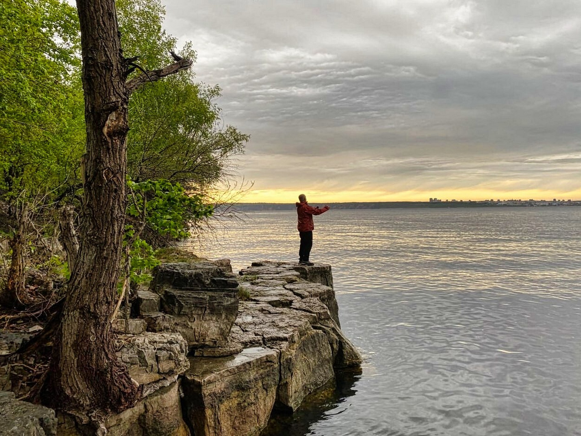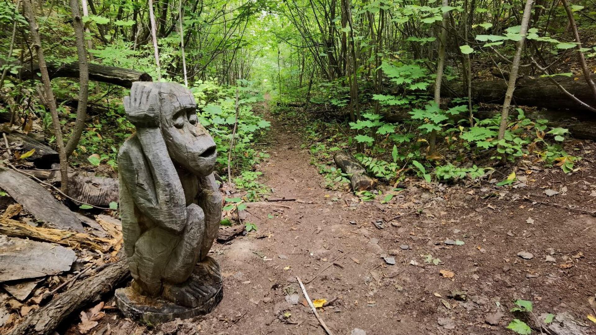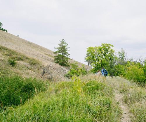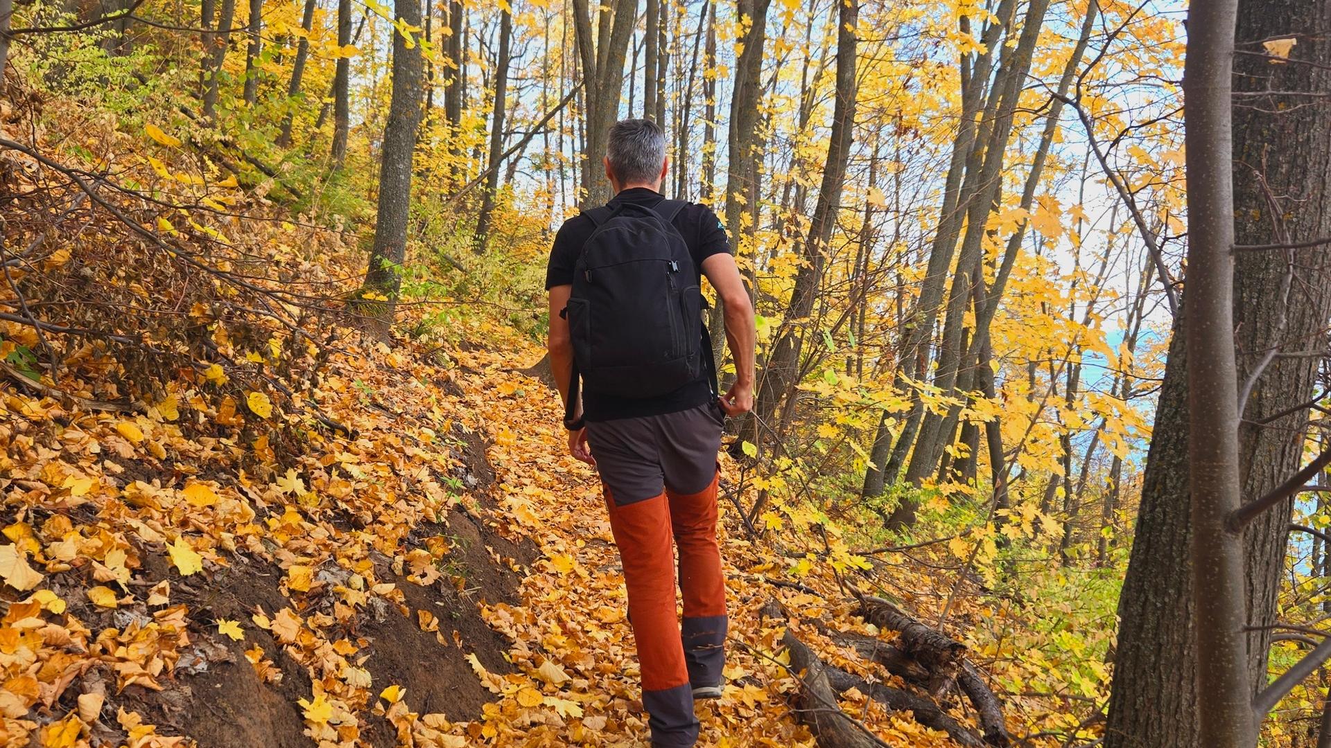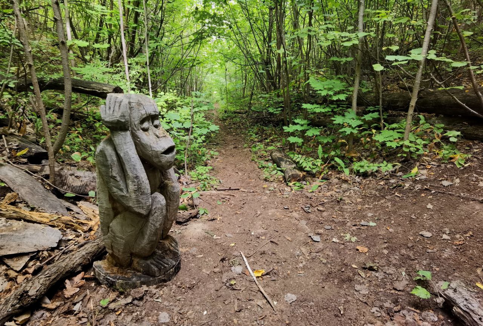 Около километра тропа идёт вдоль берега, радуя красивыми видами, а затем резко поворачивает на юг, вглубь гор. По оврагу Сказок (на картах встречается также под названием Широконький) она взбирается на гору Шишку, с которой можно посмотреть на Жигулёвск с высоты, а затем идёт к оборудованной стоянке для отдыха на горе Отважной. Отсюда открывается, пожалуй, лучший вида на Жигулёвскую ГЭС, также на большом протяжении видна Волга, а на её противоположном берегу – Тольятти.