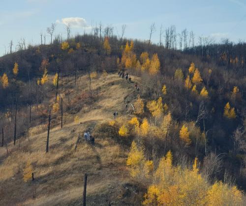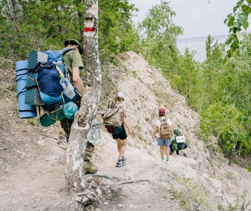 Маршрут начинается от автобусной остановки «Парковая улица» в микрорайоне Г-1 города Жигулёвска и по улицам Спортивной и Строителей выходит к берегу Волги вблизи Жигулёвской ГЭС. Далее тропа около километра идёт вдоль берега, радуя красивыми видами, а затем резко поворачивает на юг, вглубь гор. По оврагу Сказок (на картах встречается также под названием Широконький) она взбирается на гору Шишку, с которой можно посмотреть на Жигулёвск с высоты, а затем идёт к оборудованной стоянке для отдыха на горе Отважной. Отсюда открывается, пожалуй, лучший вида на Жигулёвскую ГЭС, также на большом протяжении видна Волга, а на её противоположном берегу – Тольятти. Со смотровой площадки на горе Отважной путь продолжается по тенистой лесной дороге, выходя на видовую точку Лысой горы над заливом Яблоневый Овраг, а затем по затерянным в лесу старым горным дорогам спускается к автобусной остановке в посёлке Яблоневый Овраг.