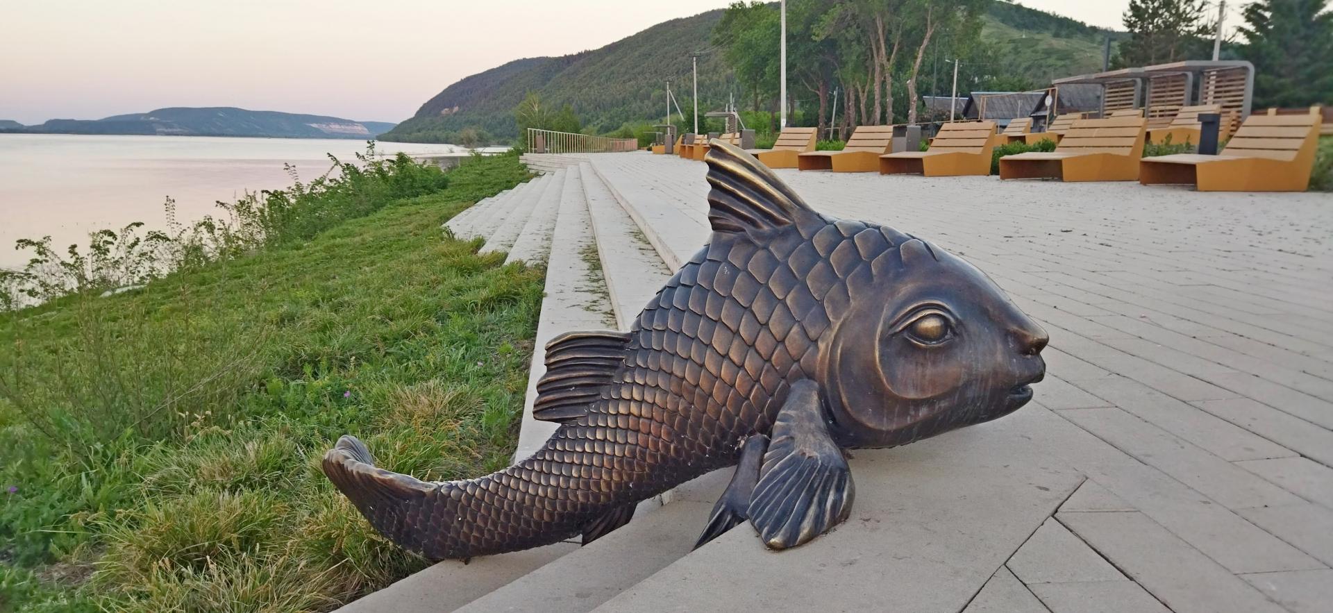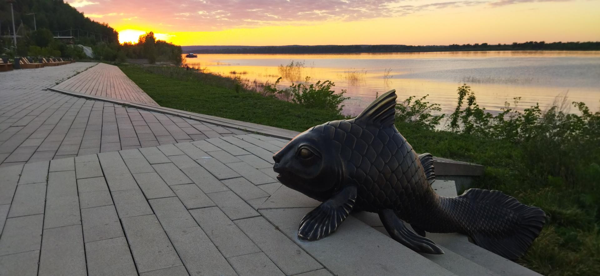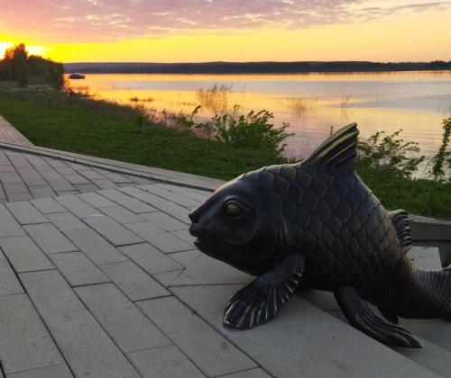 Посмотреть на карте Симпатичная бронзовая рыба, решившая выйти на сушу на набережной в Ширяево. Символизирует ступени эволюции, начавшейся именно в этом селе)